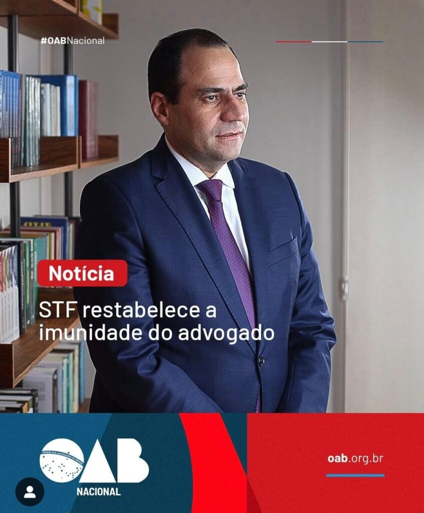 O STF, por decisão unânime, julgou procedente a Ação Direta de Inconstitucionalidade (ADI 7231), movida pela OAB Nacional, restabelecendo no Estatuto da Advocacia o dispositivo que garante a imunidade profissional do advogado.