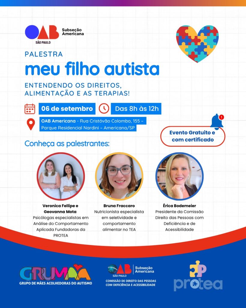 Pensando nisso, a OAB Americana, por meio da Comissão de Direito das Pessoas com Deficiência e de Acessibilidade, convida você para um evento imperdível, feito com muito carinho para oferecer informação, acolhimento e orientação prática.