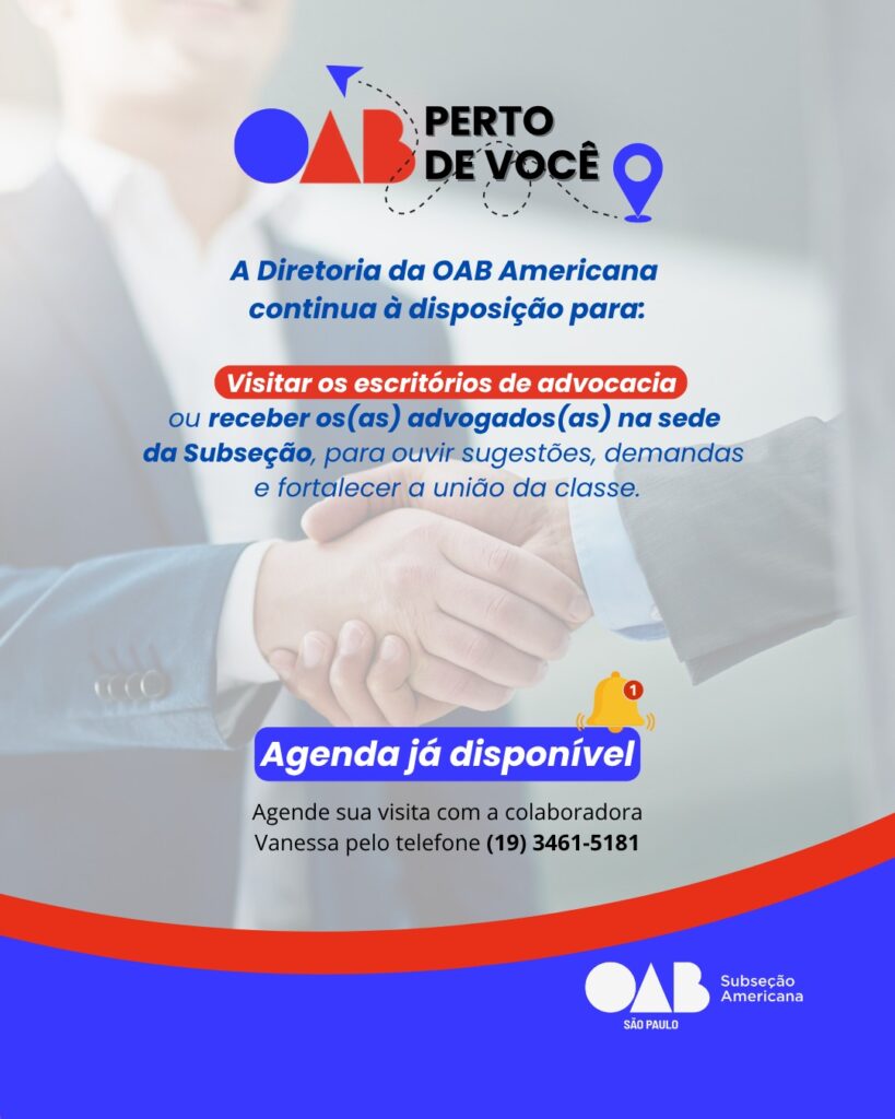 Diretoria da OAB Americana intensifica aproximação com a classe por meio do projeto “OAB Perto de Você”. Categorias: DiretoriaInformaçõesVisita Insitucional